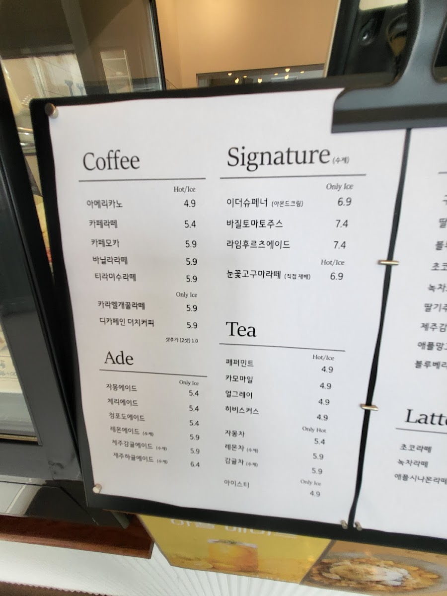 - Desserts: Indulge in Coffee Bean Bread for ₩5,000, or treat yourself to a Croffle with ice cream and whipped cream, also at ₩5,000.
